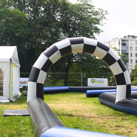 The advantage of this inflatable circuit is that it can be used to organise many different races. So you can offer small pedal maps for the little ones or choose motorised buggies for the big kids and adults. This inflatable track is suitable for all sports activities. 10 small cars, quads or pedal go-karts can thus run around the track at the same time. The circuit is quite wide, so aspiring drivers can safely overtake each other.