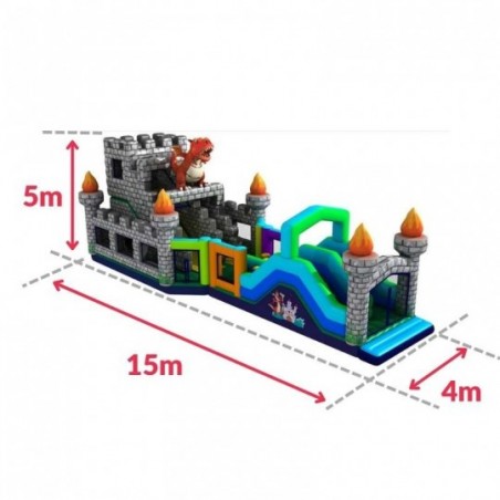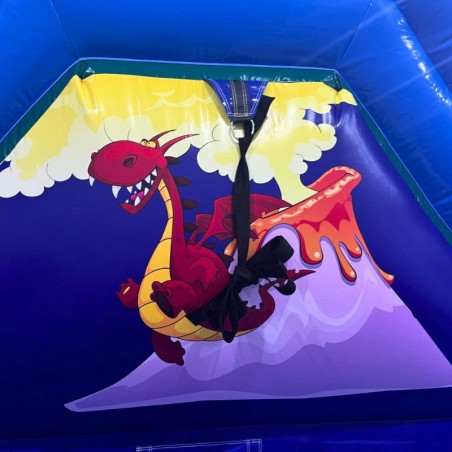 Mit seinen imposanten Abmessungen bietet dieser aufblasbare Parcours Platz für mehrere Kinder gleichzeitig und fördert so das Gruppenspiel und die Interaktion. Er ist 12,7 Meter tief, 4 Meter breit und 6 Meter hoch. Dank dieser großzügigen Proportionen bietet diese Struktur ein flüssiges und immersives Erlebnis und ermöglicht eine optimierte und sichere Zirkulation.