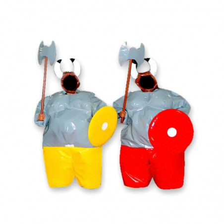 Inspired by real sumo fights, this original and fun game is very popular and will please with its beautiful design. The foam costumes take on the look of vikings battle outfits with an ornamental belt as well as Viking helmets, an axe and a shield to protect against enemy assaults. It will also be ideal for creating an entertaining fighting area dedicated to adults for hours of non-stop fun! For more fun, the sumo games come in a kid's version and are available in several variations: Sumo, Santa and Double-Sumo. Our sumo costumes are made from Tarpaulin PVC and are tearproof and rainproof. They have also been designed and manufactured to the latest safety standards to ensure you have the best and safest playing experience. Our game comes with a range of accessories such as: 2 Sumo suits with belts, 2 helmets, 2 storage covers and 1 5 x 5 m mat. Want to discover the adult sumo game? Then don't wait any longer and come and have fun for good convivial moments with family and friends!