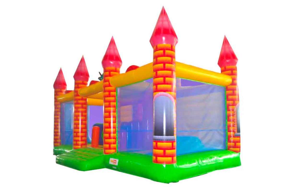This bouncy castle looks like a medieval castle with a dragon on top. This bouncy castle has a unique design with beautiful details such as: brick towers with windows, the built-in dragon and its incredibly bright colours that promise hours of fun with friends. We love: the activity area with slide, climbing area, trampoline and lots of obstacles to keep young and old entertained.