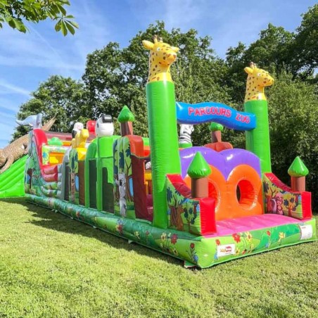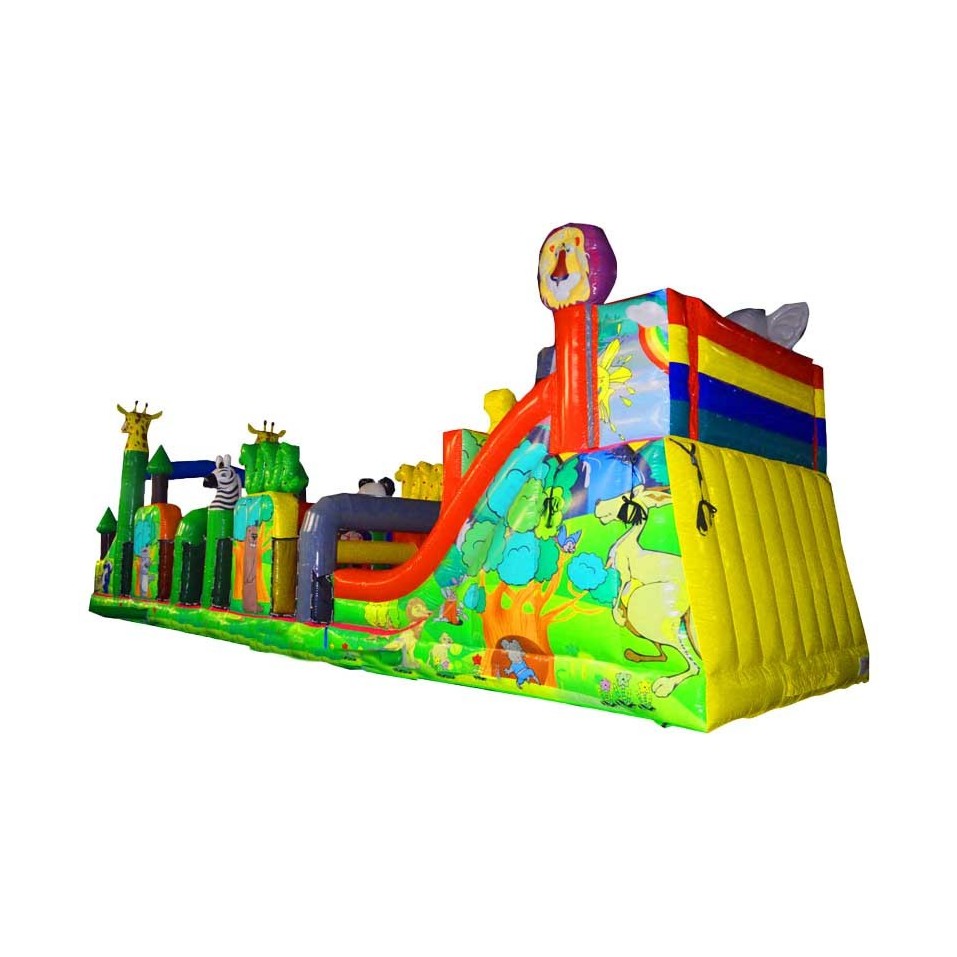 Enter the enchanted world of the BInflatable playgroundZoo where children will be able to see many inflatable animals. This second hand inflatable playground promises long hours of fun with its multi-activity playground with a toboggan, obstacles and a trampoline area! Kids won't have time to get bored as this second hand inflatable obstacle course is 15 metres long! Its vitamin-packed colours will put a smile on the faces of children and parents alike. Max capacity: 30 people in continuous flow. Activity zones: slide, trampoline, obstacle, tunnel and climbing. EN14960 standard. 3 x 220V 16A sockets. Dimensions : W 4 x D 15 x H 5 m. All our second hand inflatables have undergone a precise and rigorous quality control.