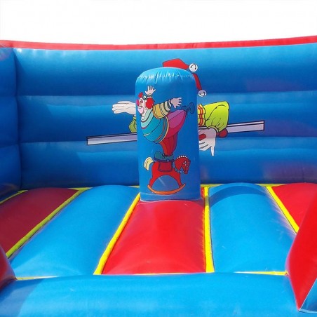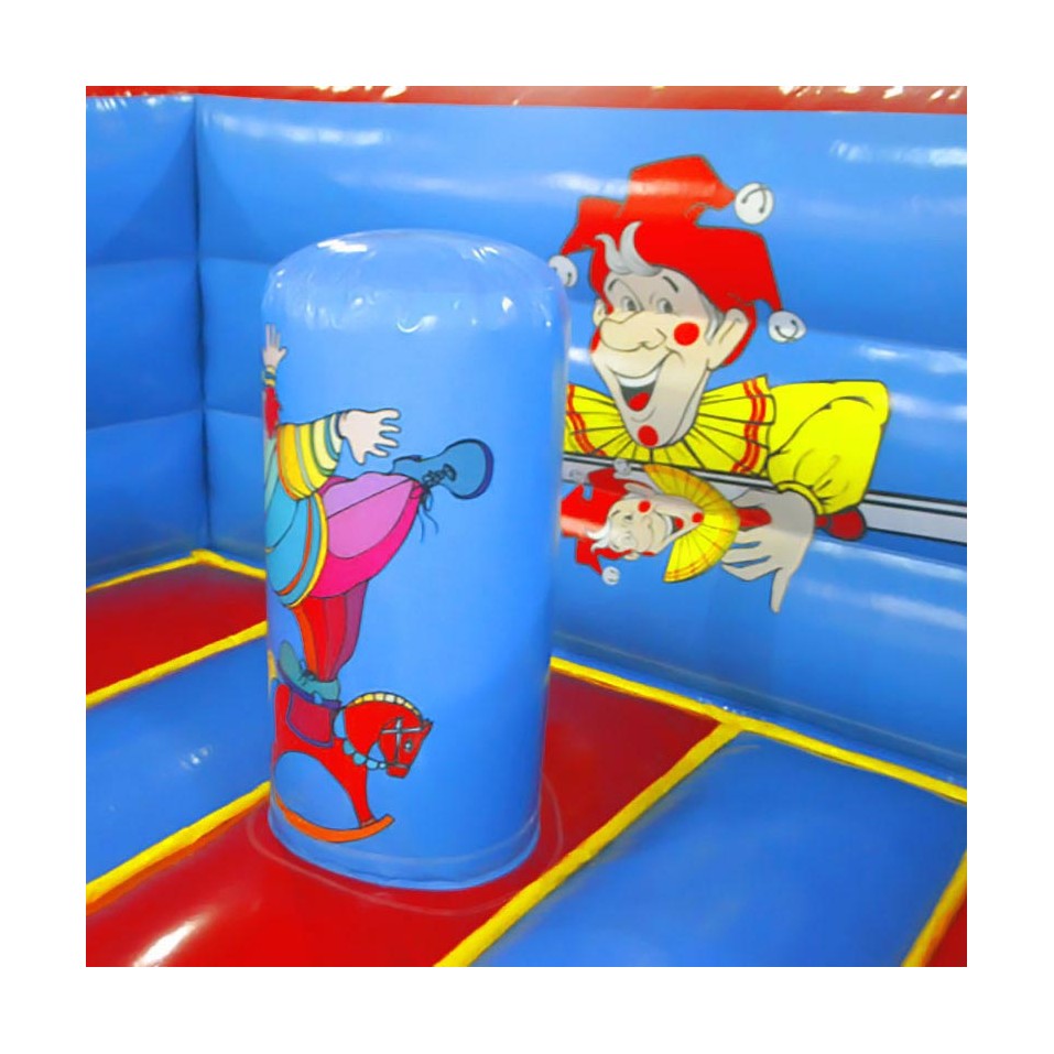 The 4m inflatable clown castle has been designed and tested by professionals to meet the current standard (EN14960) and ensure the safety of participants. This small inflatable has been manufactured using high quality, very strong, M2 class flame retardant canvas. The canvas has also been treated to protect the inflatable from UV, wear and tear and discolouration.