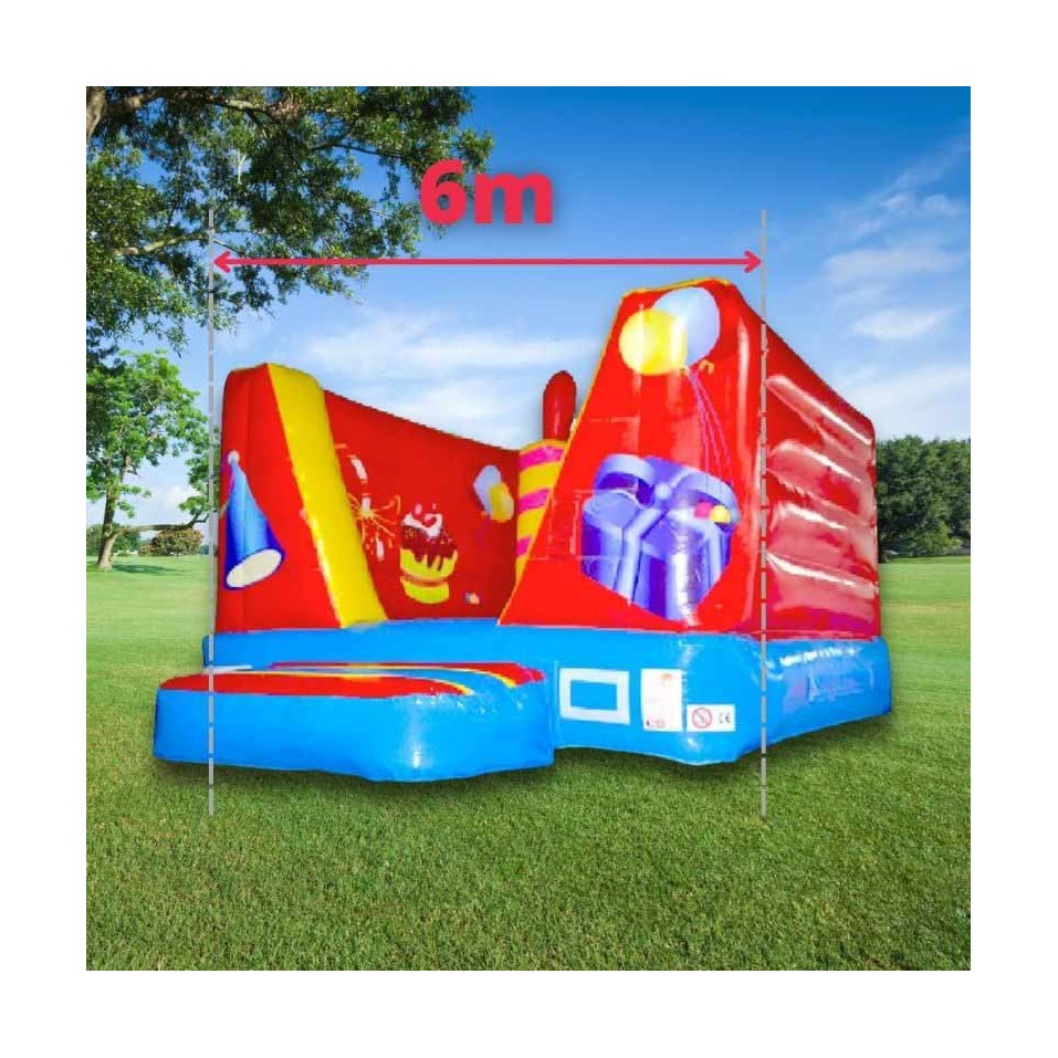 Want to liven up your events?Thee6m Birthday Cube Castleis the ideal second hand bouncy castle to bring entertainment. Colourful and birthday themed, this second hand inflatable is accessible to children from 3 years old. Toddlers will love bouncing and jumping on the trampoline area. Dimensions: W 6 x D 3 x H 2 m. This second hand inflatable castle has an inflated birthday candle in the centre of the structure. Maximum capacity: 10 people. Minimum age: 3 years. 1 x 220V 16A socket. All our bouncy castles have undergone rigorous quality control.