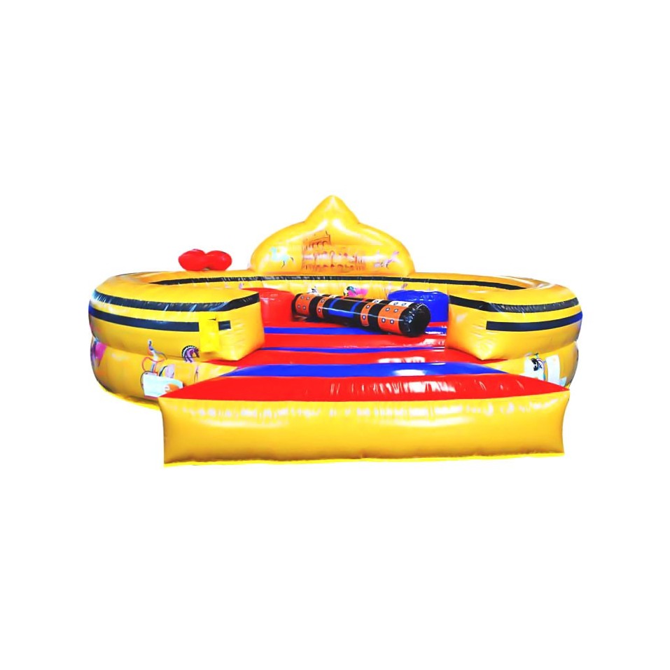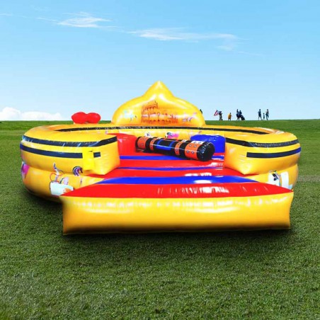 ¡Entre en la arena del combate de gladiadores romanos! Esta ocasión de juego hinchable promete una gran diversión. Armados con una justa hinchable, los jugadores tendrán que intentar derribar a su adversario: cualquier movimiento está permitido (o casi). Para ganar, deberá ser el primero en derribar a su oponente: ¡risas garantizadas! Esta estructura hinchable de segunda mano divertirá por igual a padres e hijos. Su diseño original y colorido atraerá las miradas de pequeños y mayores. A partir de 8 años. Dimensiones: A 6 x P 6 x A 0,9 m. Capacidad máxima: 2 personas. 1 toma de 220V 16A. Todos nuestros juegos hinchables de segunda mano han sido sometidos a un riguroso control de calidad.