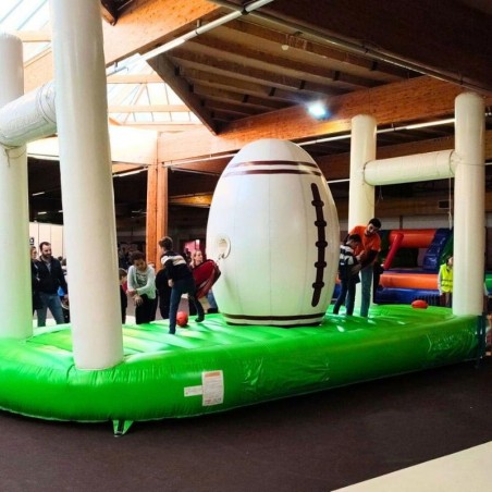 Descubra el juego hinchable deportivo de segunda mano:el Equalizer Rugby. Este hinchable deportivo de segunda mano es perfecto para crear un parque infantil 100% deportivo. ¡Los jugadores podrán intentar marcar grandes tries! El principio es el mismo que el del Duelo de Cuerdas Elásticas. Los participantes estarán atados al balón de rugby XXL por una banda elástica alrededor de la cintura. Para ganar, ¡el jugador debe alcanzar la línea de meta antes que su adversario! Accesible a niños a partir de 7 años y adultos. Este juego hinchable deportivo de segunda mano puede instalarse en interiores o exteriores en diferentes tipos de campos. ¡Ideal para crear competiciones con la familia o los amigos! Dimensiones: A 8 x P 3,5 x A 4 m. Capacidad máxima: 2 personas. Edad mínima: 7 años. 1 toma de 220V 16A. Pelota no incluida. Todos nuestros hinchables segunda mano han sido rigurosa y profesionalmente probados.