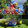 Estos juegos mecánicos feria dan la bienvenida a niños de 2 a 8 años. Subido en una silla voladora, el pequeño hará piruetas y observará el entorno, todo en altura. Los padres podrán observarlos desde el exterior de la estructura de juego. Los juegos mecánicos feria son totalmente seguros y permiten montar a 10 niños en un flujo continuo.
