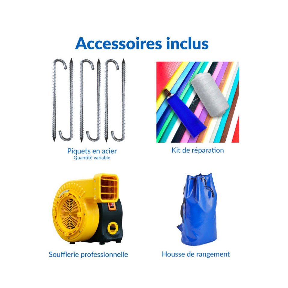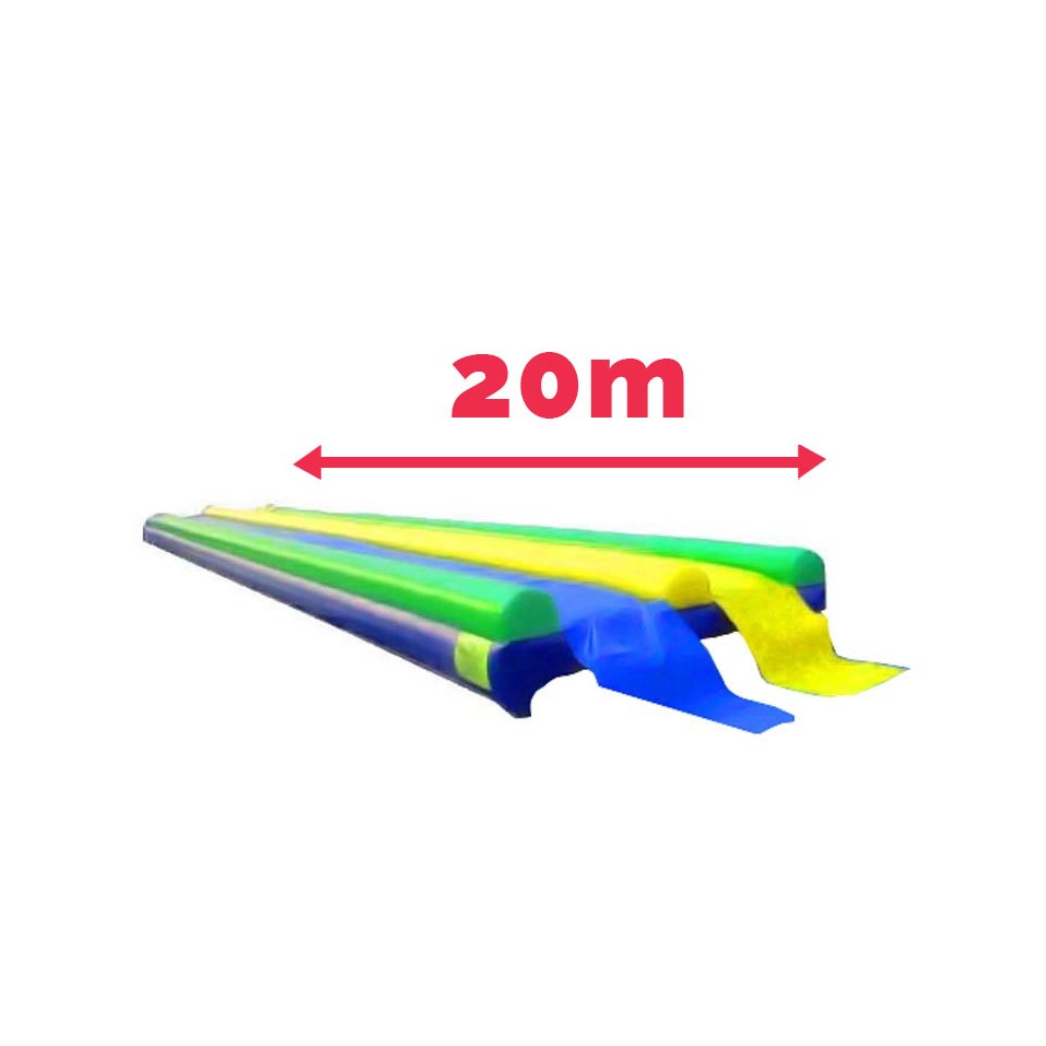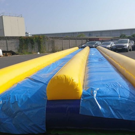 When designing the Slip n slide 20m 2 lanes without pool, professional teams have adapted to ensure that it complies with the current EN14960 standard. This European standard ensures that players can safely use theadult slip n slide. The inflatable has been created in high quality, very robust and fireproof M2 class PVC fabrics. During the manufacture of the inflatable, the fabrics have been treated to ensure it is protected against UV, wear and tear and discolouration.