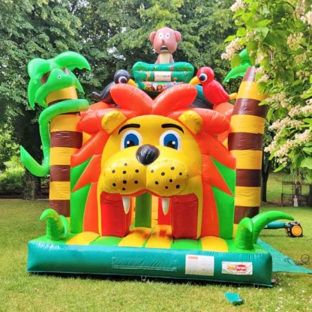 Notice to little adventurers: the King Lion Course has many surprises in store with its multi-activity playground! This second hand inflatable course colourful and impressively designed with a giant inflated lion's head is going to blow the children's minds. Accessible from the age of 3, toddlers will love its activities: inflatable slide, obstacles, climbing zone etc... This second hand inflatable game reserves long hours of 100% fun! Dimensions: W 4 x D 9 x H 6 m. Maximum capacity: 12 people. 4 x 220V 16A sockets.