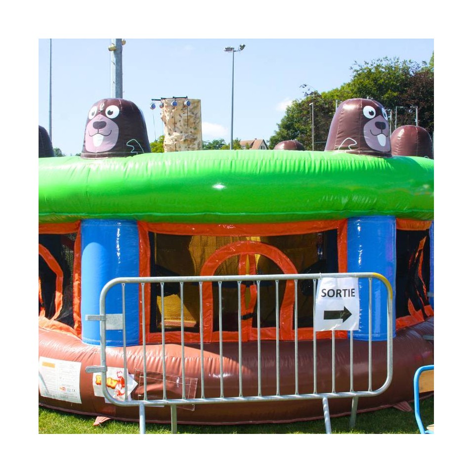 The Mole Hunt is a fun inflatable game that promises long hours of laughter for participants and spectators. Equipped with an inflatable club, the hunter must prevent the moles from grabbing the balls placed in the center of the inflatable. This game will require patience and agility to reach the balls and avoid being caught. Maximum capacity: 7 people (1 hunter + 6 moles). Dimensions: W 4,3 x D 4,3 x H 1,8 m. 1 socket 220V 16A. Weight : 78 kg. From 6 years old. Supplied with 20 balls, 1 inflatable club and protective helmets.