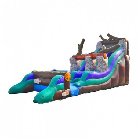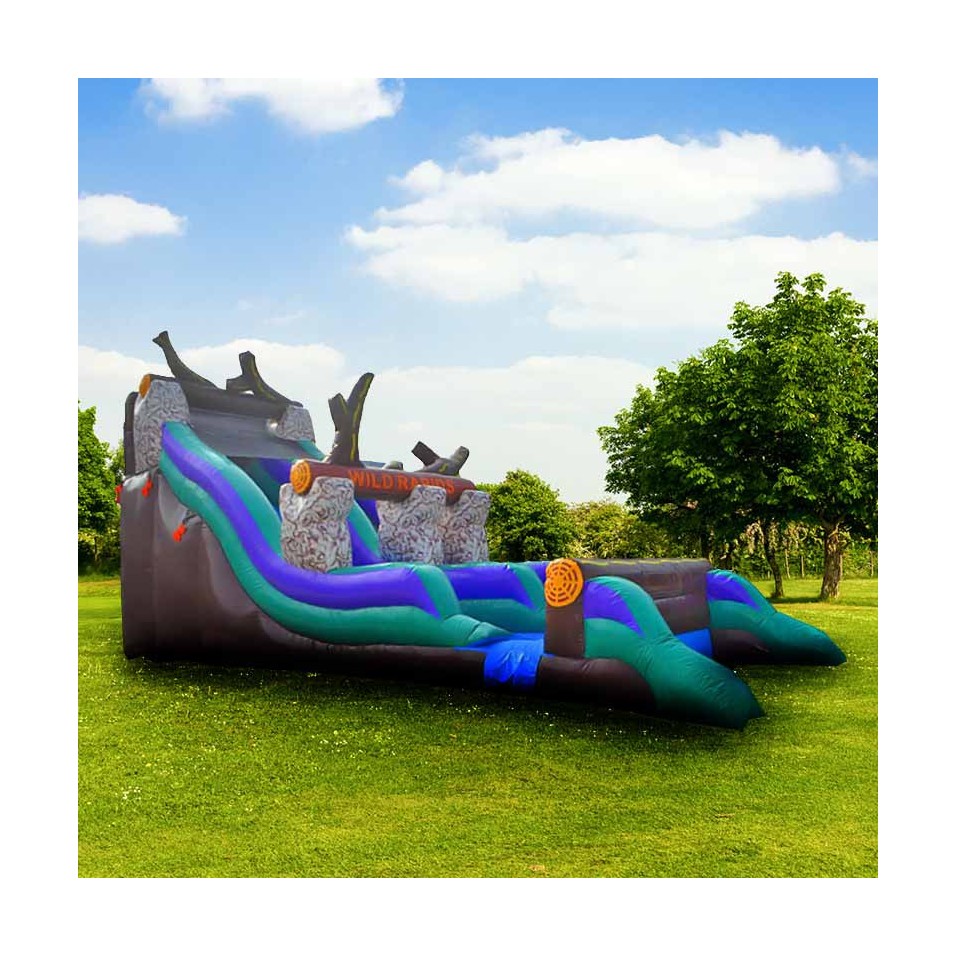 Take on the dizzying drops of the Rapid Rivers Aquatic Toboggan! This inflatables guarantees thrills and hours of laughter with friends! Ainflatable slide to set up in a recreation park or camping site during the summer months. From 6 years old. Has a slide and a climbing wall. We like its exceptional and original design. Possibility to install a hose to create a continuous water flow and create even more fun! Dimensions : W 12 x D 3 x H 6 m. Maximum capacity: continuous flow. 2 x 220V 16A sockets.