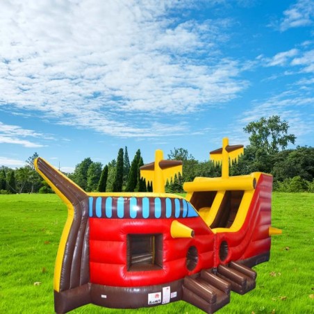 Lo Scivolo Nave Pirata Gigante Rosso è l'attrazione perfetta per lunghe ore di gioco. Questo scivolo gonfiabile ha tutto ed è totalmente adatto a far giocare i bambini in tutta tranquillità grazie alle sue alte pareti gonfiabili. Conforme alla norma EN 14960, questa struttura presenta finiture (tessuto effetto lucido 650g, tessuto ignifugo M2, cuciture quadruple sui vari punti di tensione) che garantiranno la sicurezza dei più piccoli.