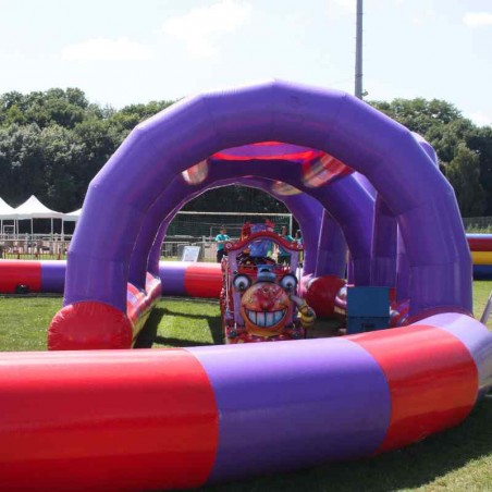 Una cosa è certa: la pista gonfiabile farà scalpore tra i bambini! Questo gioco è uno dei preferiti dei parchi di divertimento senza tempo. Così i più piccoli potranno infilarsi all'interno e salire a bordo del treno. Grazie a questa struttura gonfiabile aggiuntiva, i bambini potranno sperimentare la corsa in un modo nuovo. Le Piccole giostre da fiera sono piccoli treni da fiera pensati appositamente per i più piccoli. I bambini adoreranno sedersi nella locomotiva e viaggiare sui binari proprio come i treni veri! Dispone di un grande arco gonfiabile viola e rosso. Pista gonfiabile per il trenino Bambini. Dimensioni L19 x P10 x H3 m. 1 presa 220V 16A.